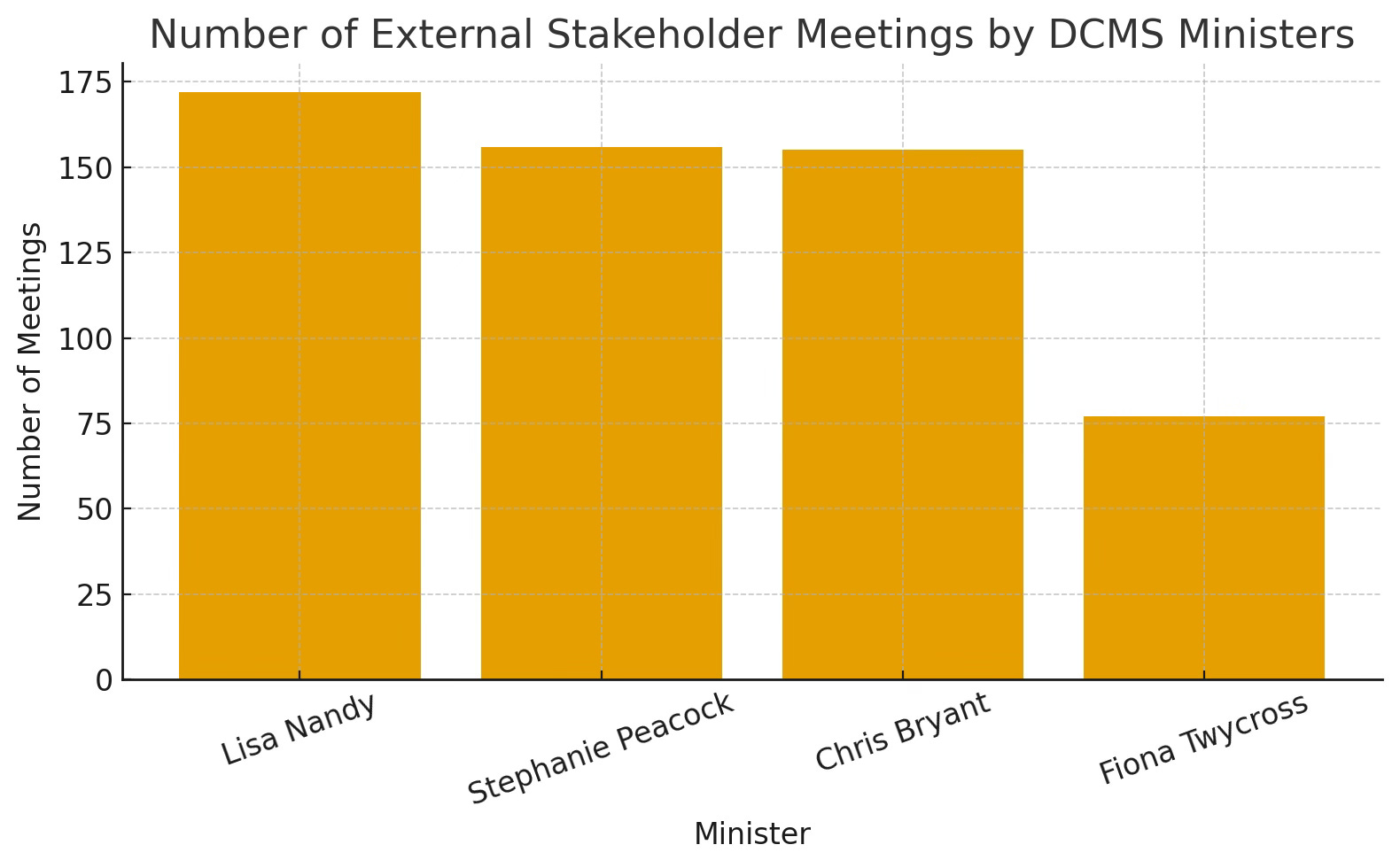 Official records: Government Ministers are required to publish details of meetings ‘with external organisations and individuals’ on a quarterly basis. The latest of these has just been published for DCMS, so I’ve trawled through the records of Lisa Nandy’s meetings from 1st July 2024 and 30th June 2025 - essentially her first year in office. Here’s what I learned:
