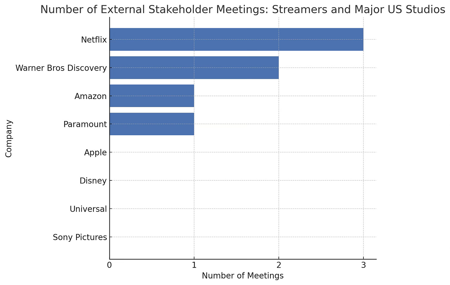 It’s the taking part that counts: Warner Bros Discovery had two meetings, and Amazon and Paramount each had one.