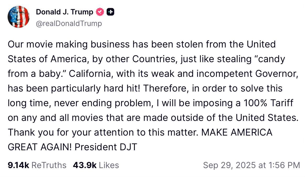 🇺🇸Film tariffs: the four things we learned from Trump’s latest post
