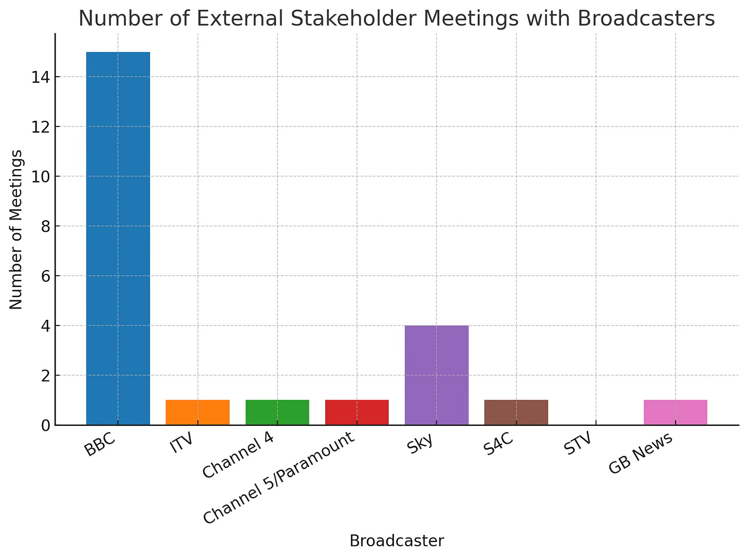 In her first year as Culture Secretary, Lisa Nandy met with representatives (in most cases the Chief Execs) of ITV, Channel 4, Channel 5, S4C and GB News once each. All of these took place last Autumn.
