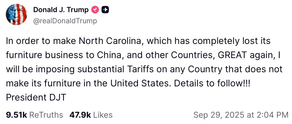 It’s more obvious now that this is, partly at least, politically driven. Trump is directing his ire at California’s Democratic Governor Gavin Newsom, perhaps laying the groundwork for 2028. But Newsom isn’t the only one. Shortly after posting about film tariffs, Trump was posting about furniture - again targeting a Democrat-led state: